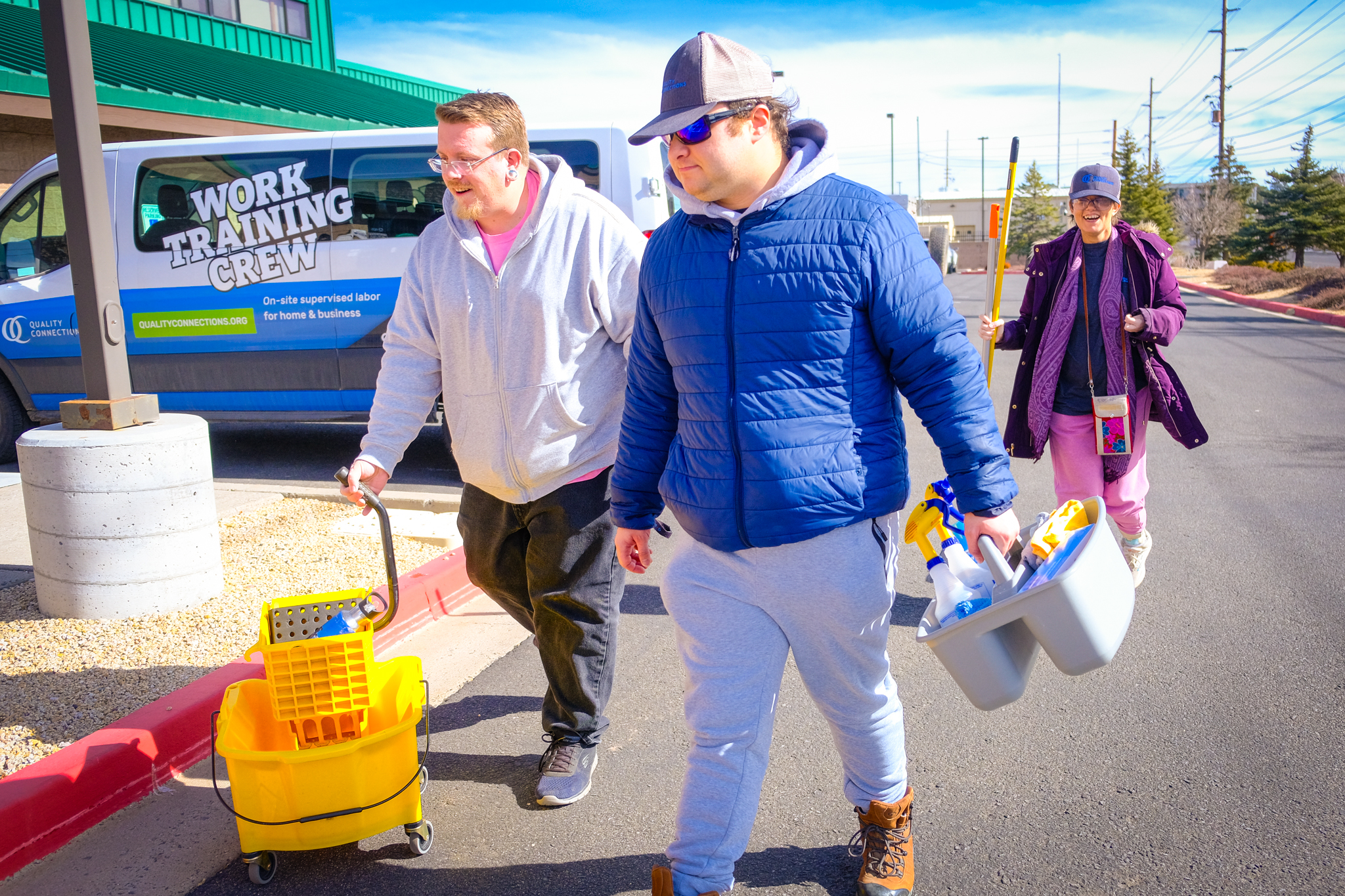 As part of Quality Connections’ Work Training Crews, they clean restrooms, mop and sweep common areas, dust, and on certain days, clean the linemen’s trucks.